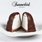 Ein Schaumkuss, in dem sich reines, saftiges Marzipan, leichtes Vanillebaiser und fruchtige Zartbitterschokolade in einem harmonischen und perfekten Gleichgewicht treffen.